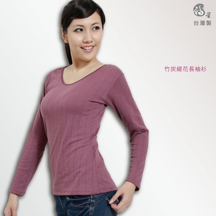 8753 奈米竹炭女性緹花長袖衫/彈性貼身/台灣製造【福星內衣】優雅雙色